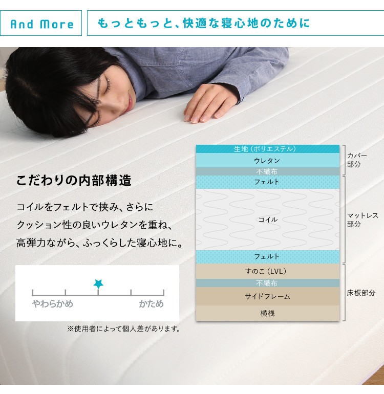 クッション材:ボンネルコイル、ウレタン、フェルト、不織布