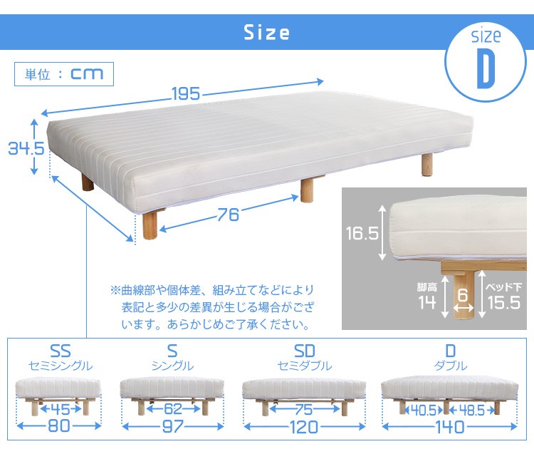 脚つきマットレスベッド 脚付き ポケットコイル ダブルサイズ