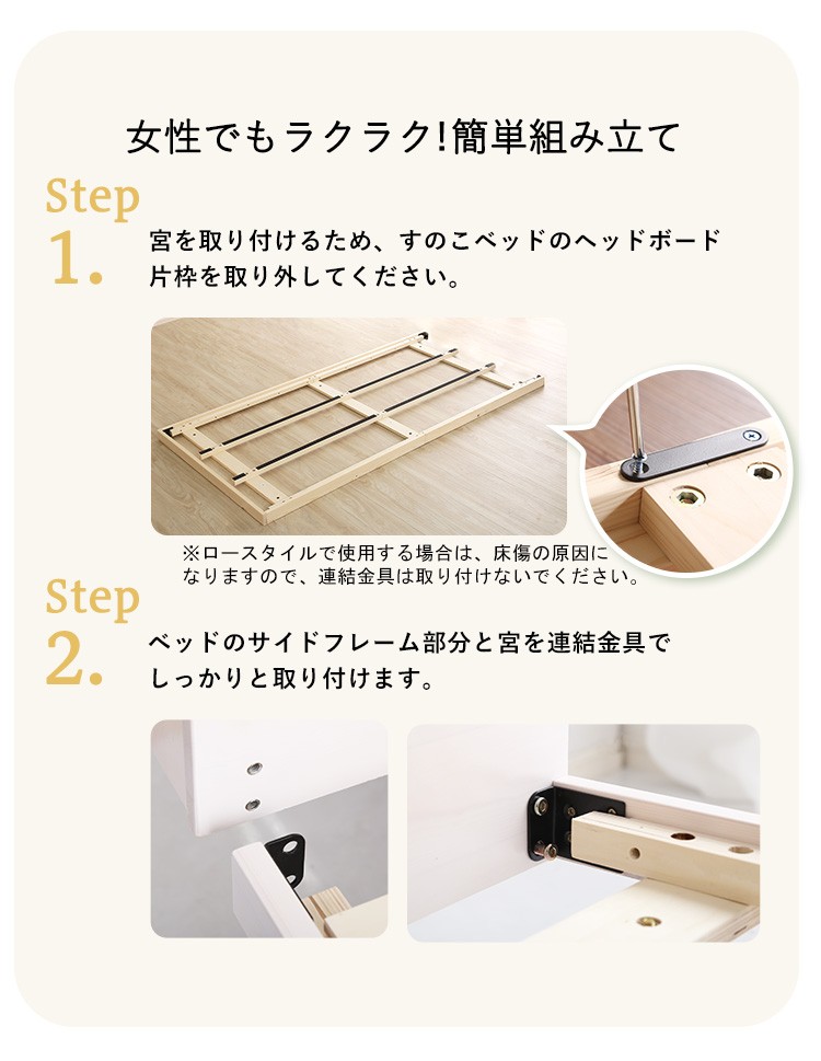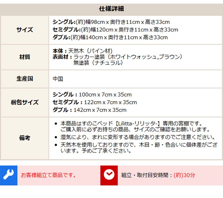 パイン材脚付きすのこベッド リリッタ専用宮単品(セミダブル用)