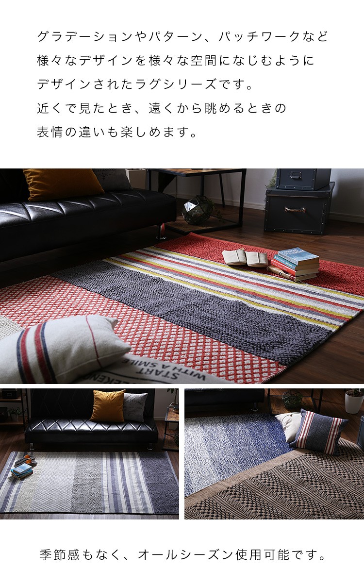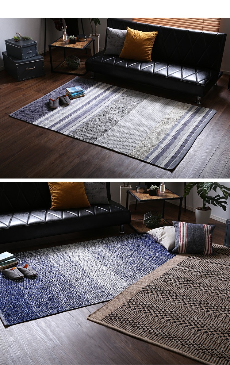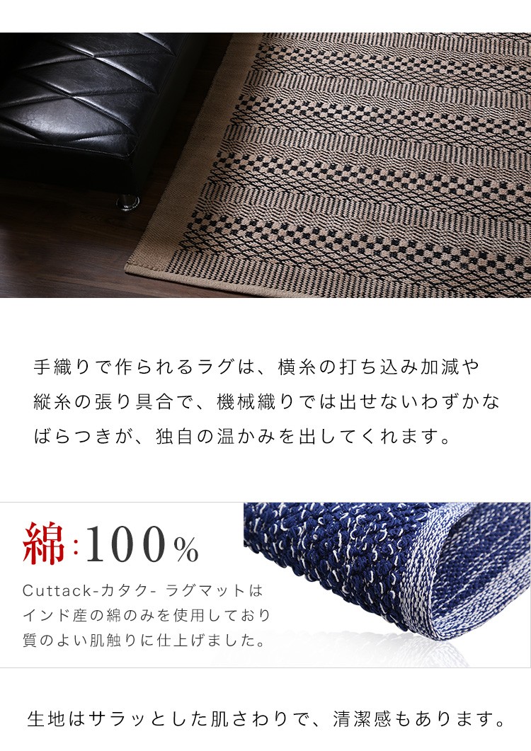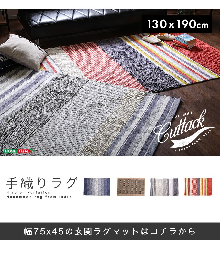 人気の手織りラグ(130×190cm)長方形、インド綿、オールシーズン使用可能|Cuttack-カタック-