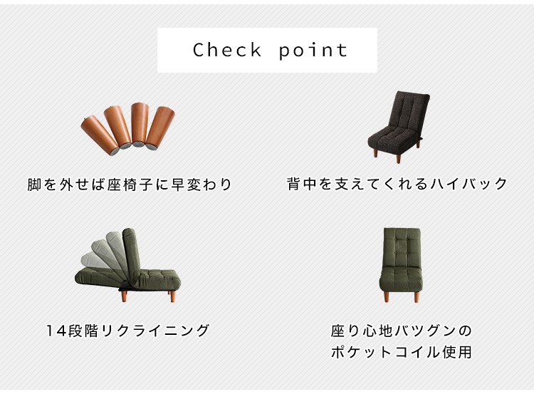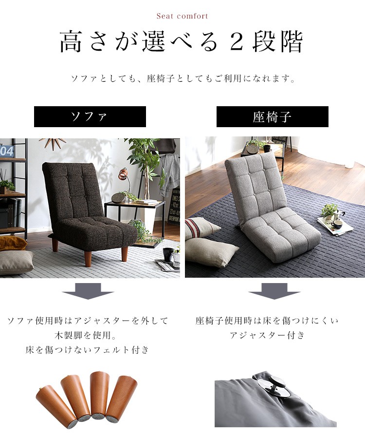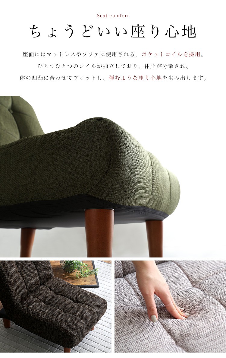 脚付きボリュームフロアソファ(1人掛け)ハイバック、ポケットコイル、14段階リクライニング【Quario-クアリオ-】