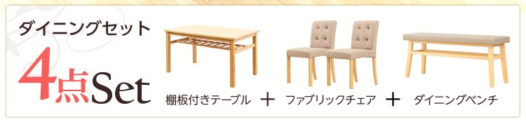 ダイニングセット 木製 ベンチ付き ナチュラル 4点