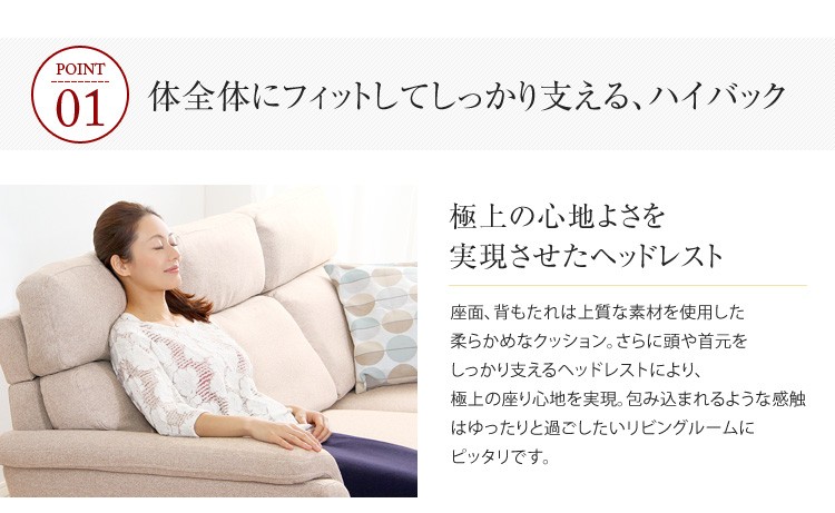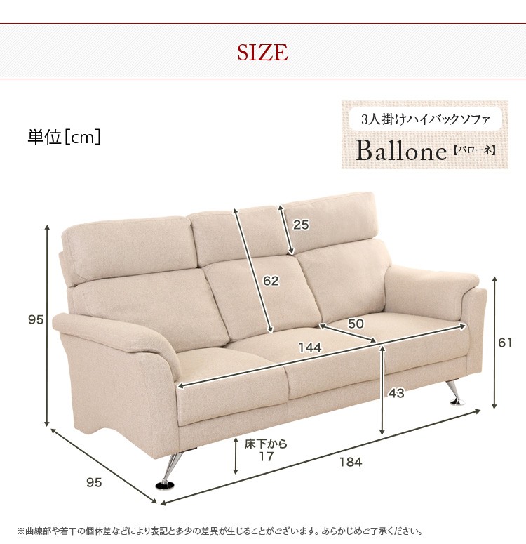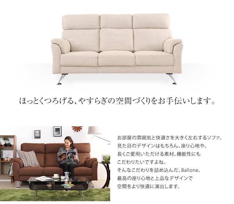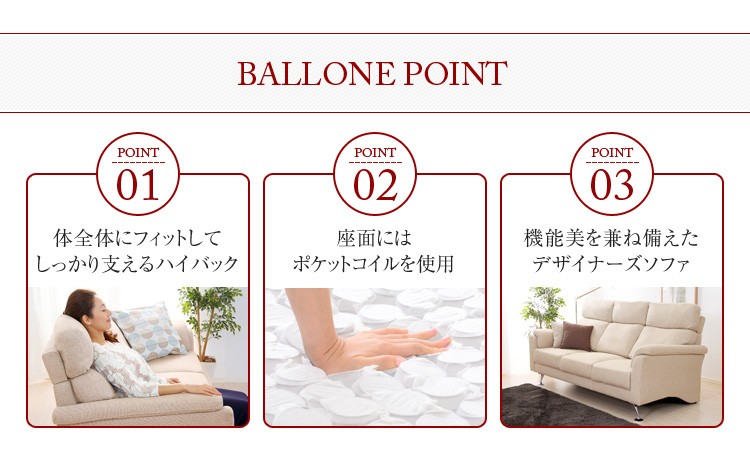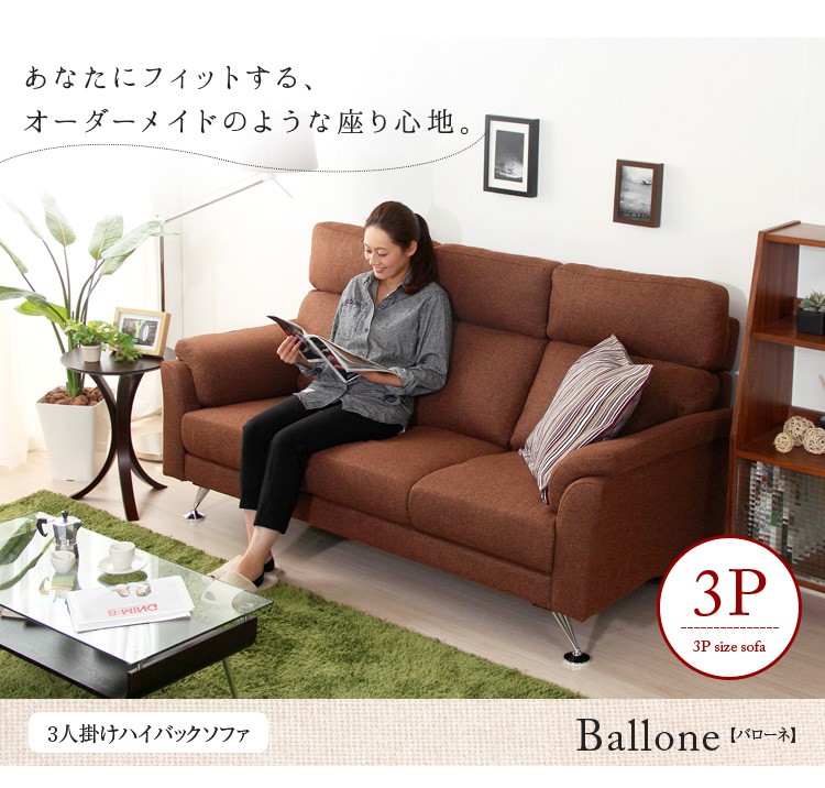 3人掛けハイバックデザインソファ【Ballone-バローネ-】(ハイバック 3人掛け ポケットコイル)