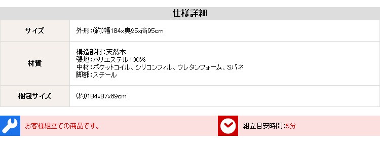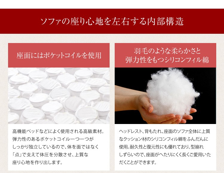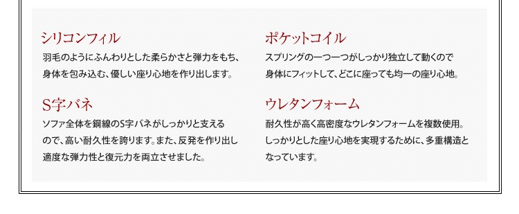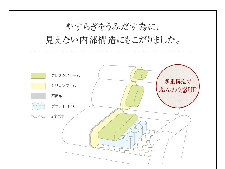 中材:ポケットコイル、シリコンフィル、ウレタンフォーム、Sバネ