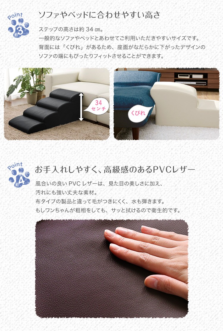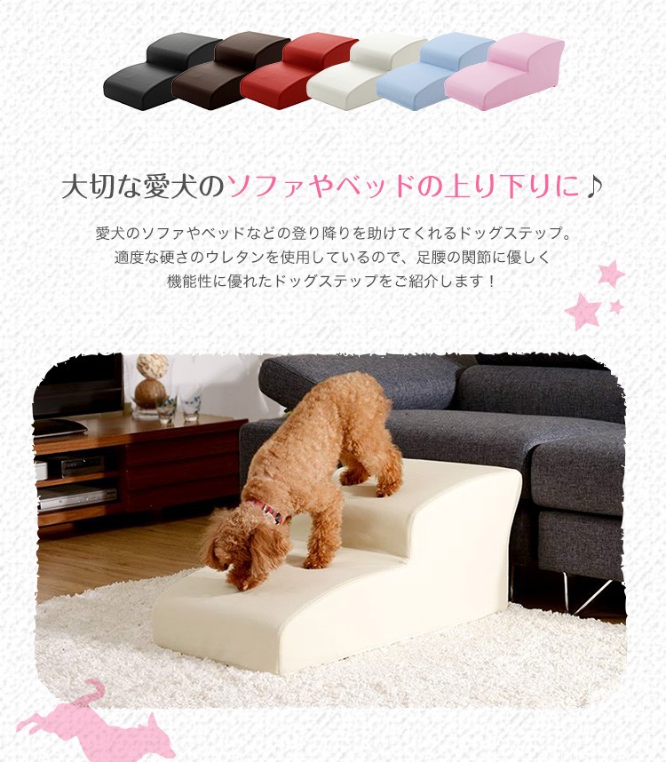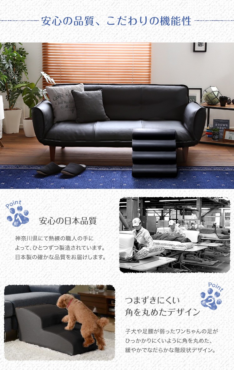 日本製ドッグステップPVCレザー、犬用階段2段タイプ【lonis-レーニス-】