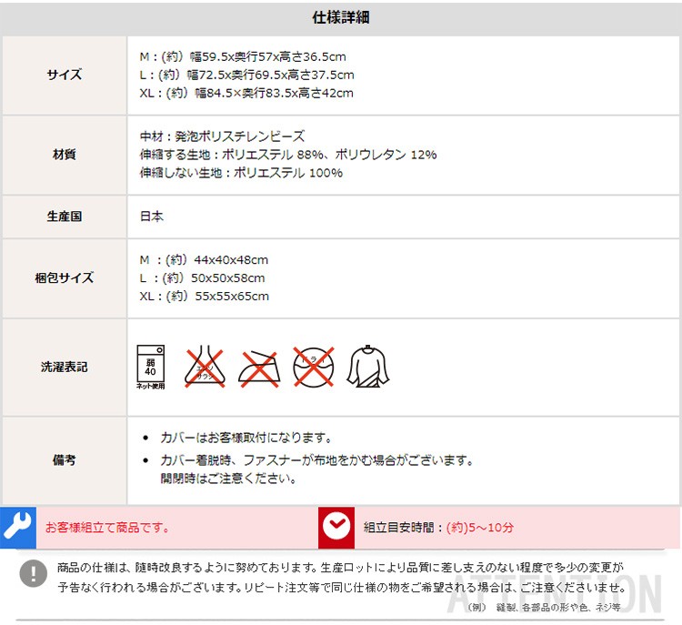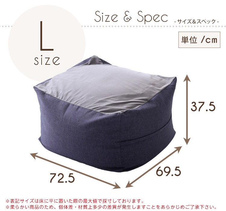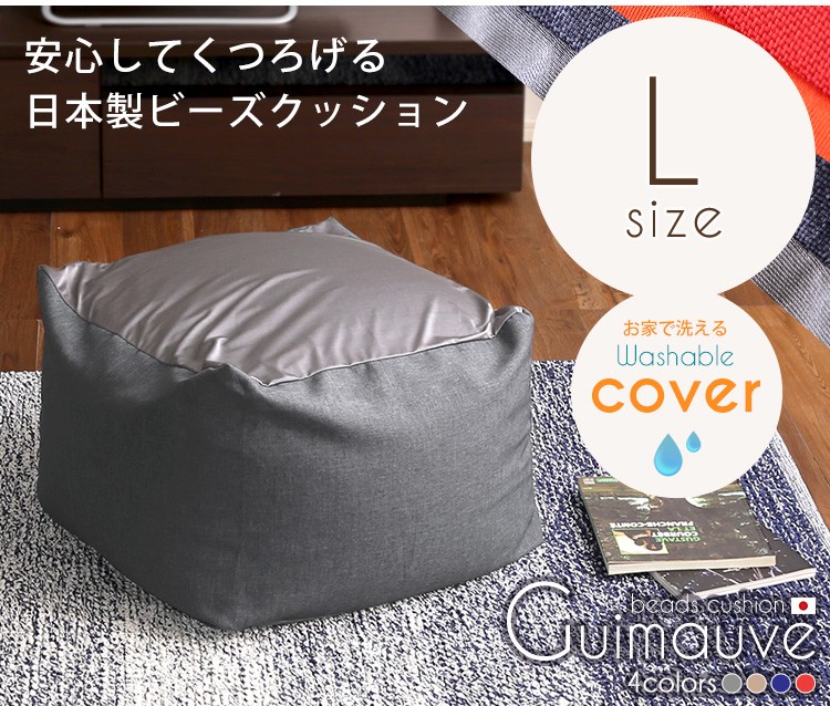 ジャンボなキューブ型ビーズクッション・日本製(Lサイズ)カバーがお家で洗えます | Guimauve-ギモーブ-