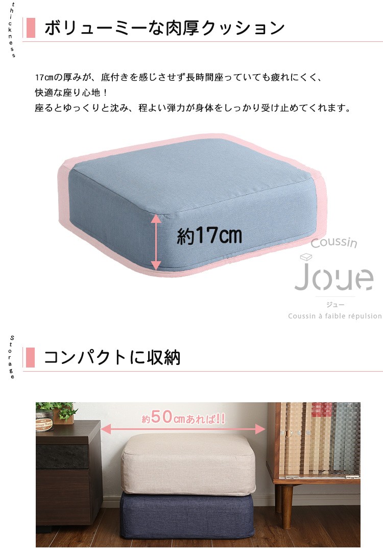 しっとり沈むカバーリング低反発クッション 洗濯可能なクッションカバー 角型【 joue - ジュー】単品