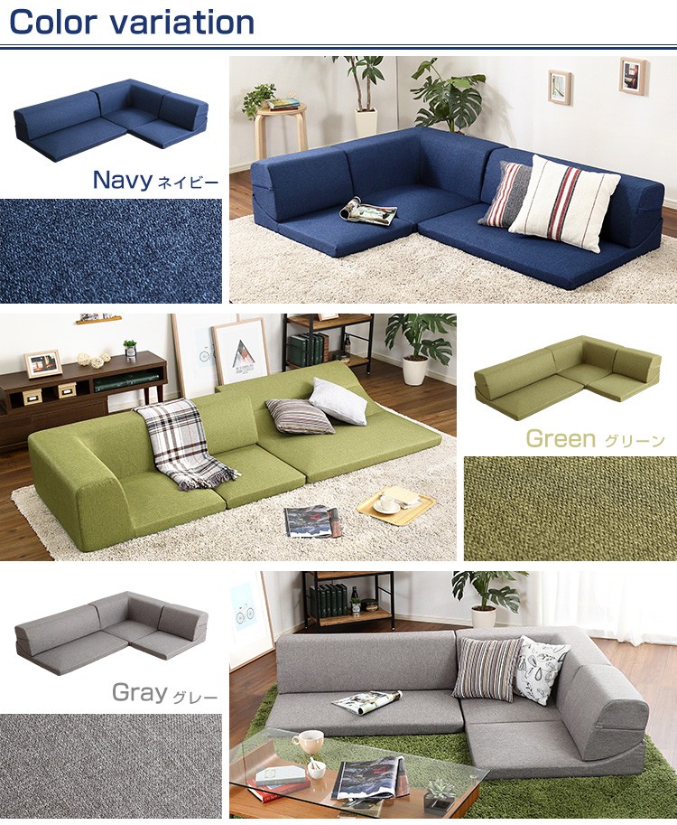 コーナーフロアソファ ロータイプ ファブリック 3人掛け(5色)組み替え自由|Linaria-リナリア-