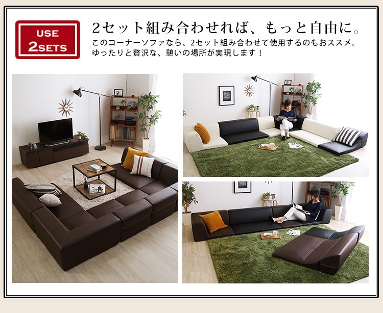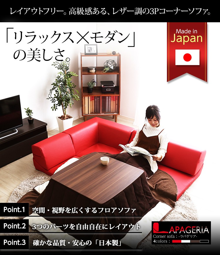 ローコーナーソファ 【Lapageria-ラパゲリア-】 使い方自由自在 フロアソファ レザー調 くつろぎ コーナーソファ 3点 セット