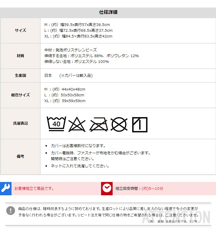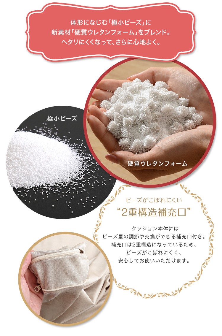 中材:発泡ポリスチレンビーズ/高弾性ウレタンフォーム