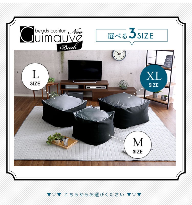 新配合でヘタリにくい キューブ型ビーズクッション ダークカラー |Guimauve Neo-ギモーブネオ- | ダークカラー XLサイズ