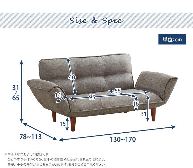 外寸:(約)幅130〜170x奥行き78〜113x高さ31〜65cm