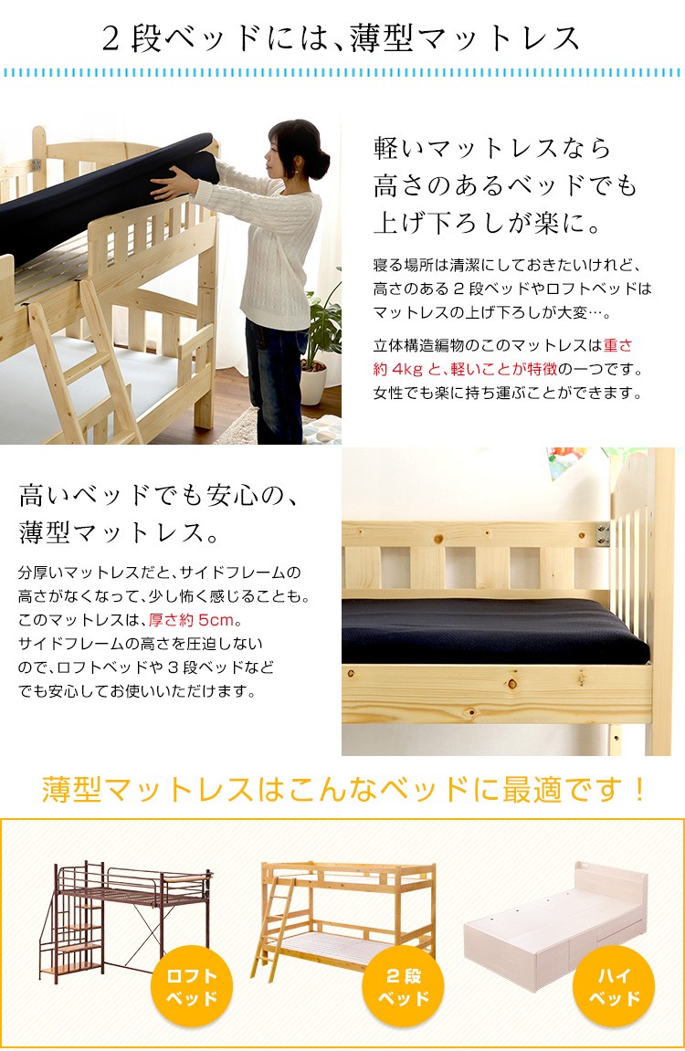 マットレス シングル用 二段ベッド用 薄型マットレス 高反発