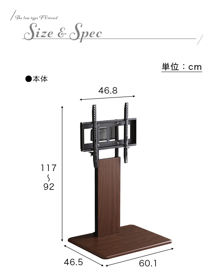 テレビスタンド:約W60.1×D46.5×H92〜117cm