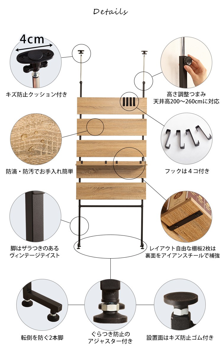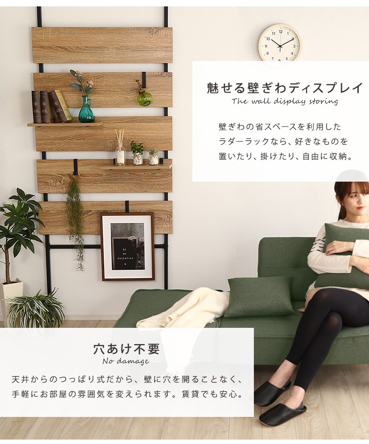突っ張り木板ラダーラック(幅80cm)【Escala-エスカーラ-】