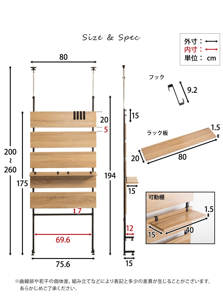 80x15x200〜260cm