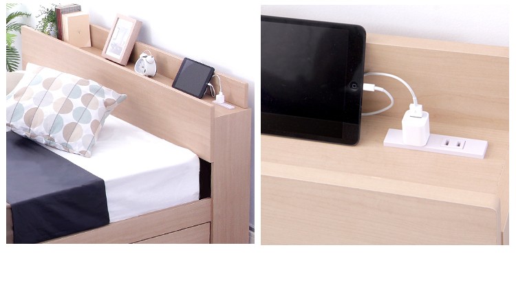 ベッド 木製 宮棚 コンセント 引出 収納 マットレス付