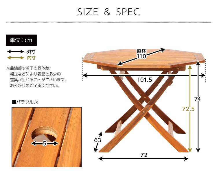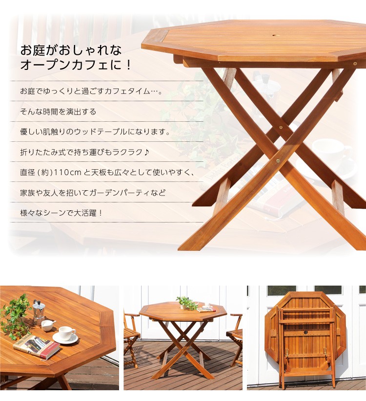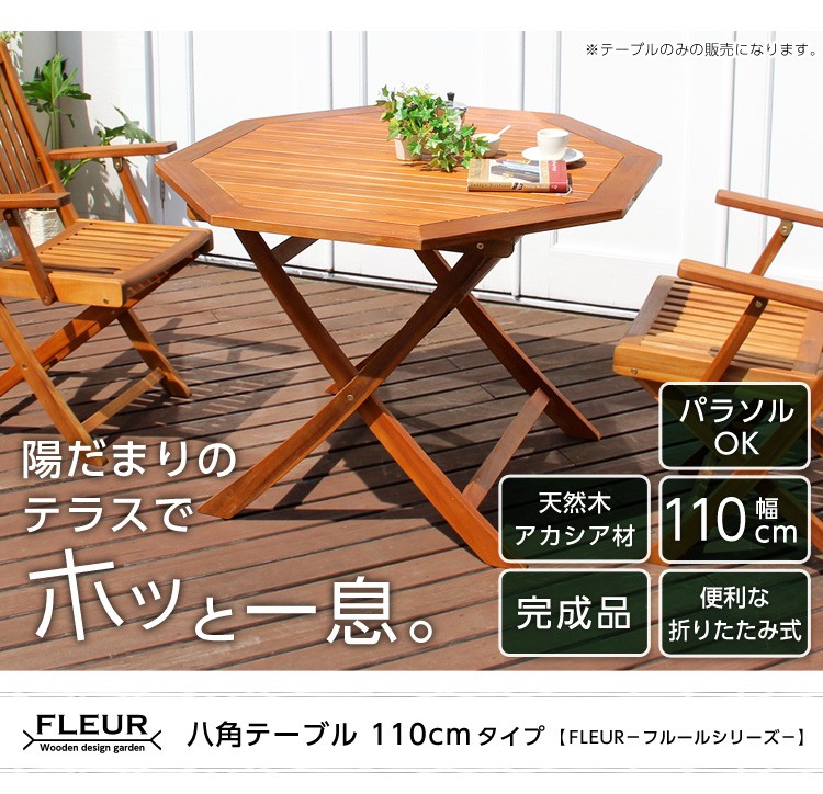 アジアン カフェ風 テラス 【FLEURシリーズ】八角テーフ゛ル 110cm