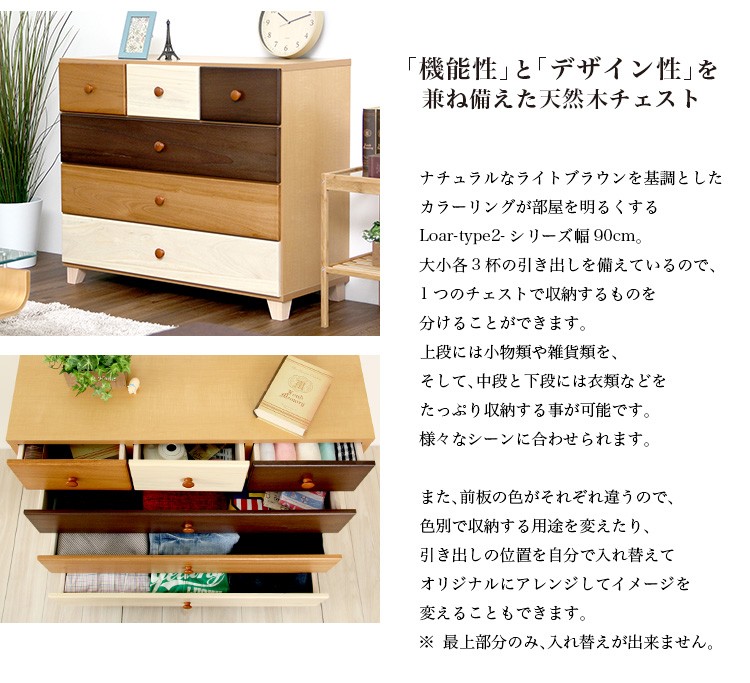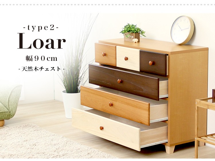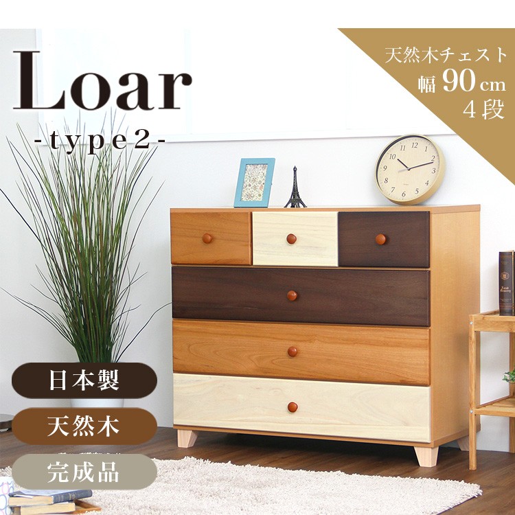 美しい木目の天然木ローチェスト 4段 幅90cm Loarシリーズ 日本製・完成品|Loar-ロア- type2