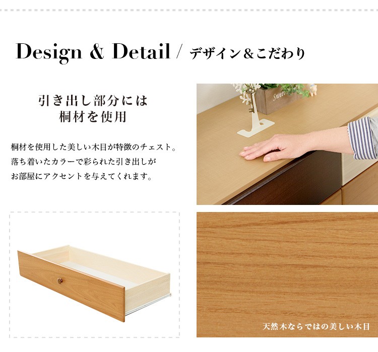 表面材:(正面)天然木 桐、(側面)プリント紙化粧繊維板