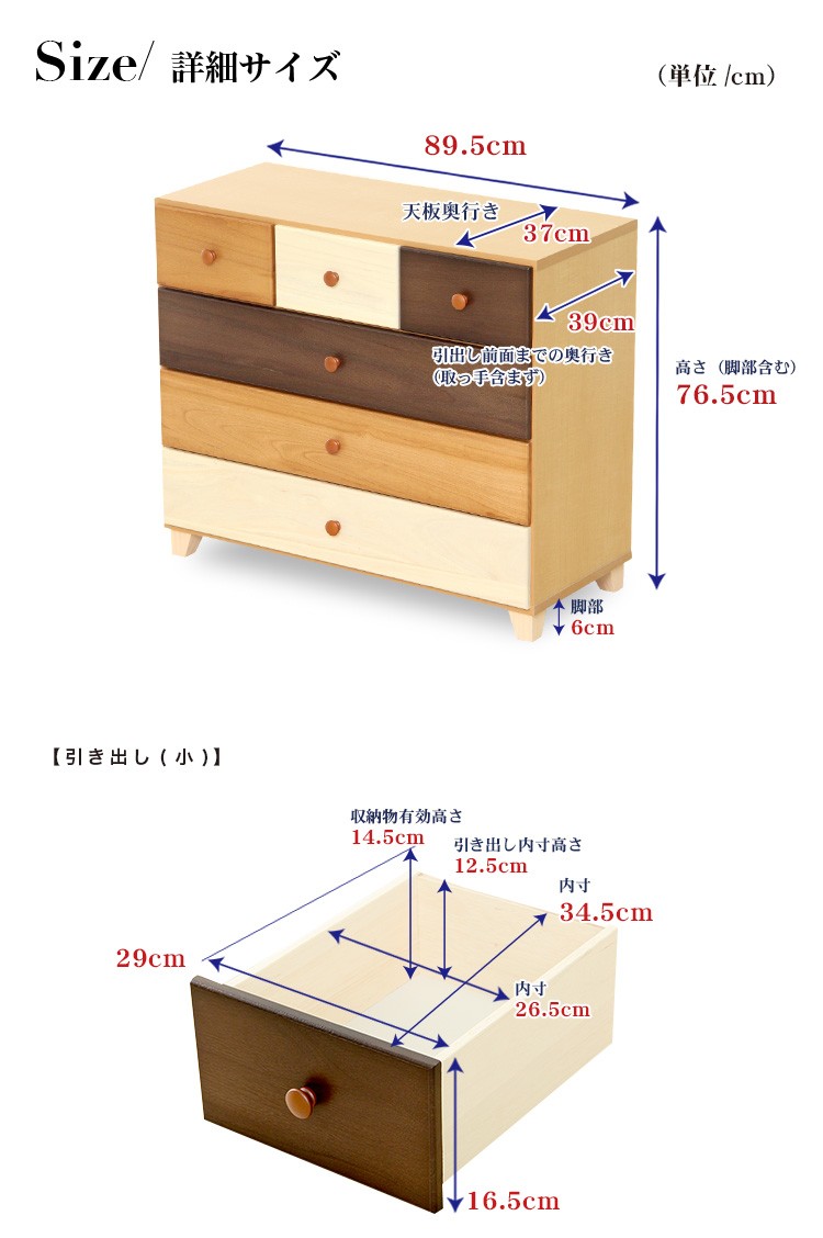 外寸:(約)89.5x37x76.5cm引き出し内寸(小):(約)26.5x34.5x12.5cm