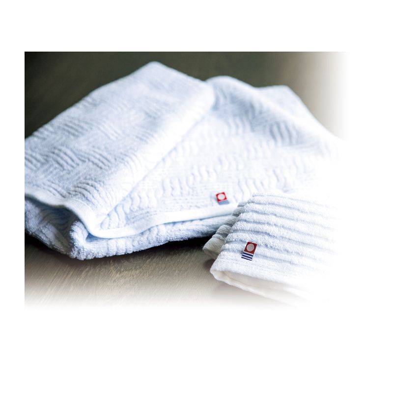 今治の「技」・美しい輪奈織紋様/吸水性・使いやすさとタオルの本質を守りつつ、今治の高いジャガード技術により美しい輪奈織紋様に仕上げています。ふっくらやわらかい甘撚りの糸厳選された良質綿をブレンドし、日本の特殊技術で紡いだ甘撚り糸を「輪奈」に使用しています。ソフトな風合いと優れた吸水性のタオルです。