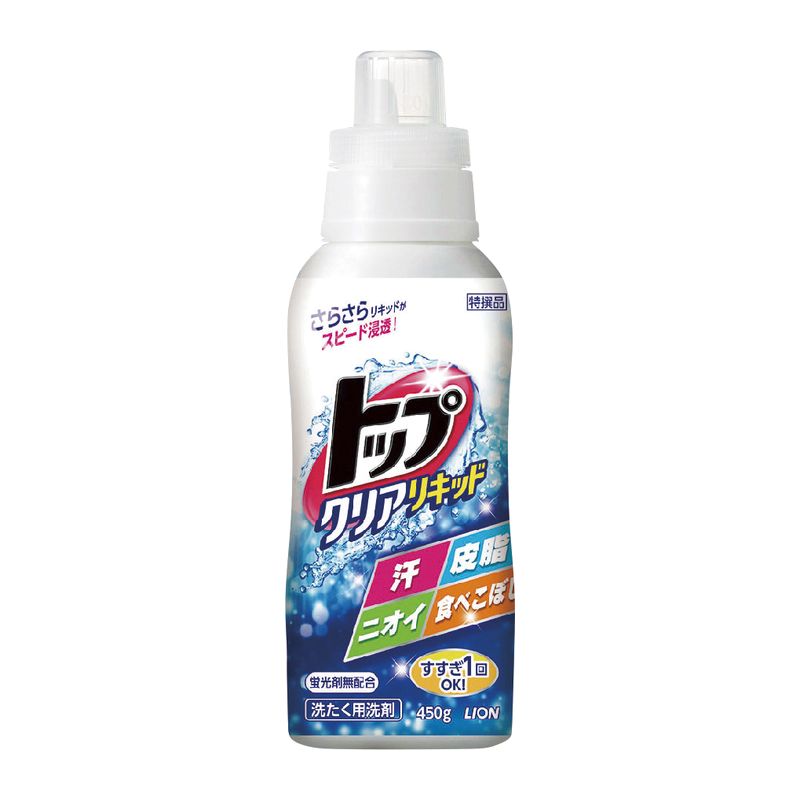 〜ライオントップクリアリキッド〜 さらさらリキッドがまとめ洗いでも繊維の奥まで浸透洗浄。幅広い汚れをさらっと落とし、黄ばみを防いで衣類を白く洗い上げる。 ・すすぎ対応1回