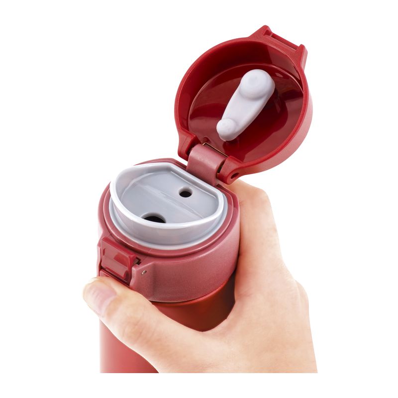 ワンタッチオープンだから、ふたを外さず片手でラクラク。飲み口が簡単に外せるのでお手入れ楽々でいつも清潔。真空二重構造で保温・保冷に優れています。 ・保温効力/6時間:53℃以上1時間:82℃以上 ・保冷効力/6時間:11℃以下