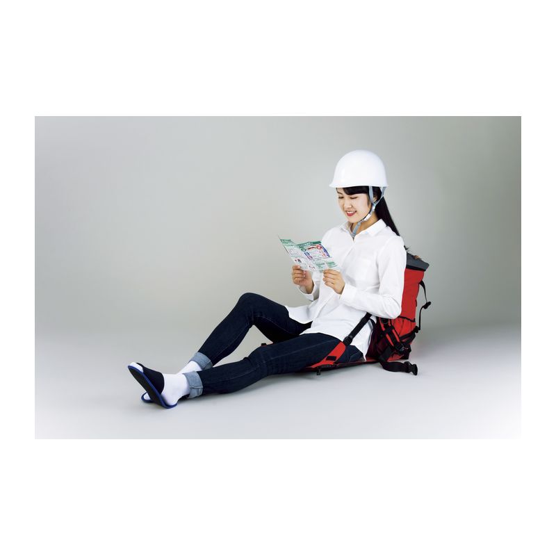 座椅子になるリュックを採用した防災セット。座面を展開する事で硬い床や、地面の上などでもリラックスしながら座ることができます。セット内容も防災士が考え、避難所での生活で必要な1日分の食料や日用品を取り揃えました。