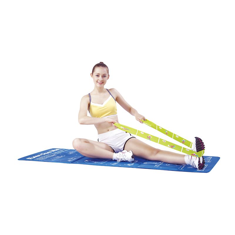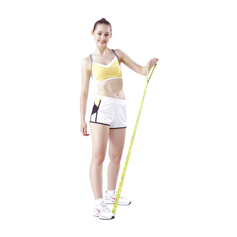 伸縮性のあるバンドで簡単エクササイズ!14種類のエクササイズがプリントされています。持ち手を変える事で負荷の調整も可能。
