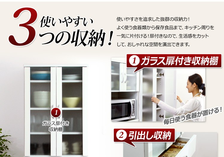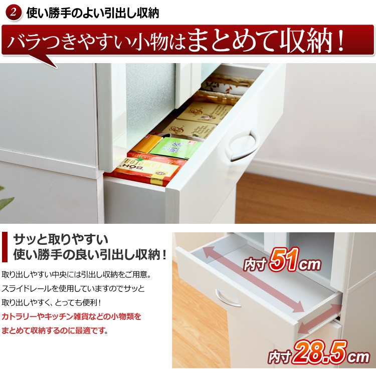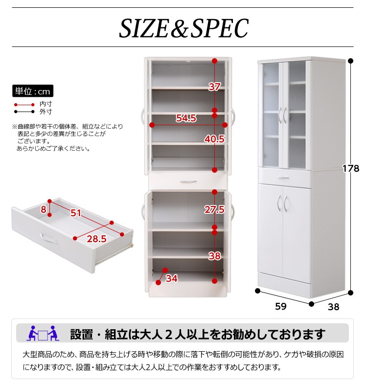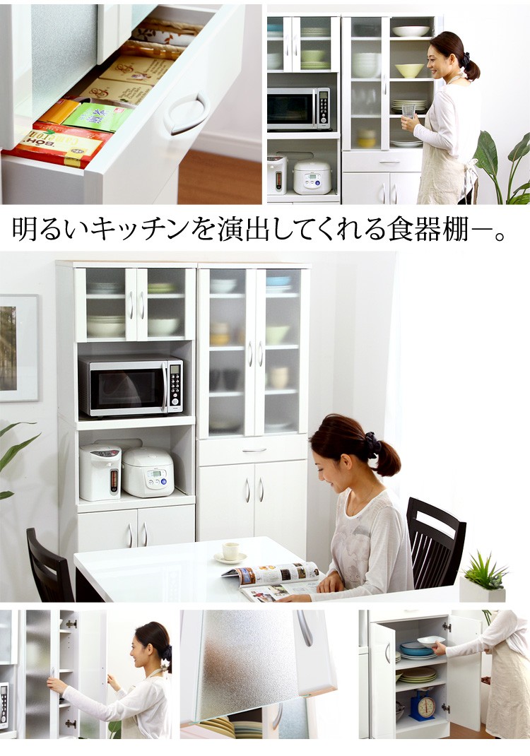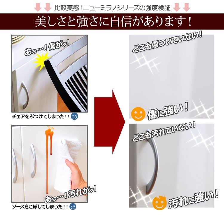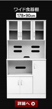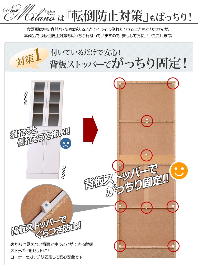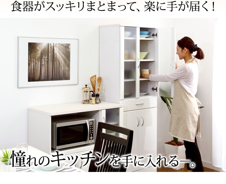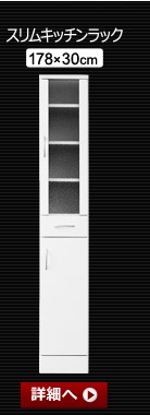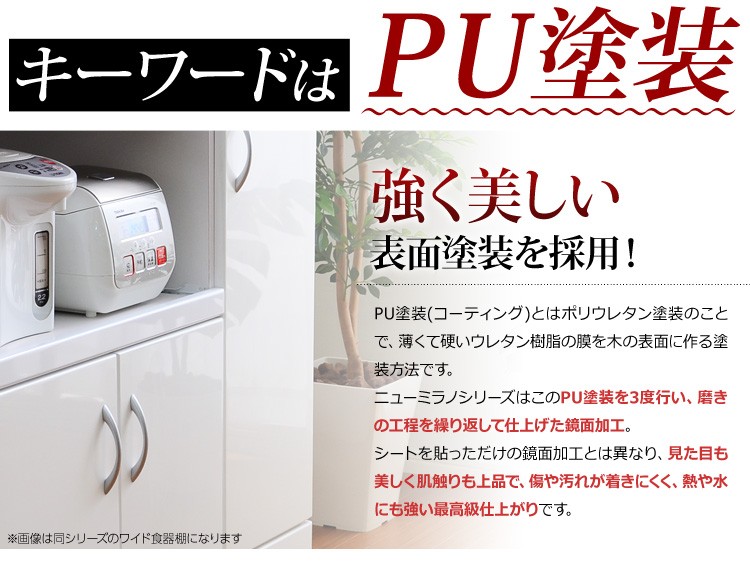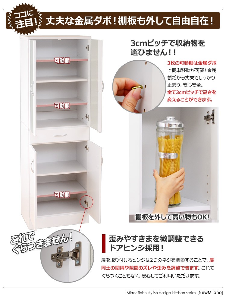 ホワイト鏡面仕上げのスリム食器棚【-NewMilano-ニューミラノ】(180cm×60cmサイズ)