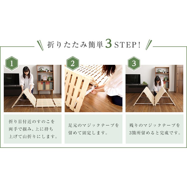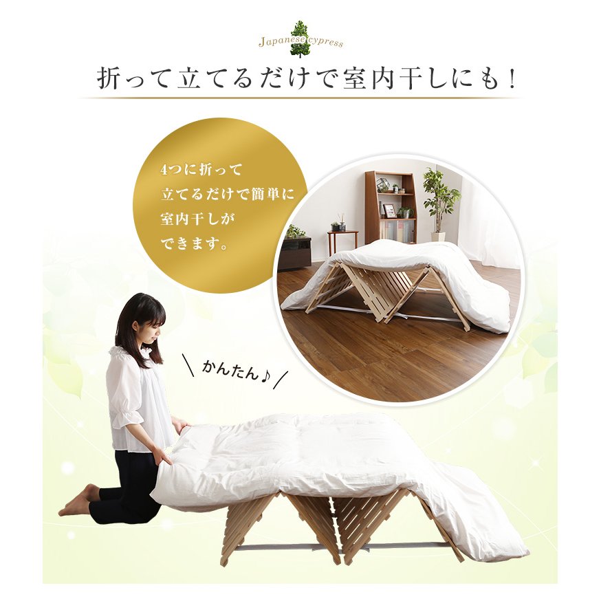 すのこベッド 四つ折り式 檜仕様(セミダブル)【涼風】