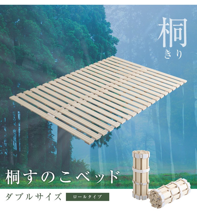 すのこベッド ロール式 桐仕様(ダブル)【Schlaf-シュラフ-】 桐 すのこ ロール式 すのこベッド ダブル 湿気 スノコマット 折りたたみ