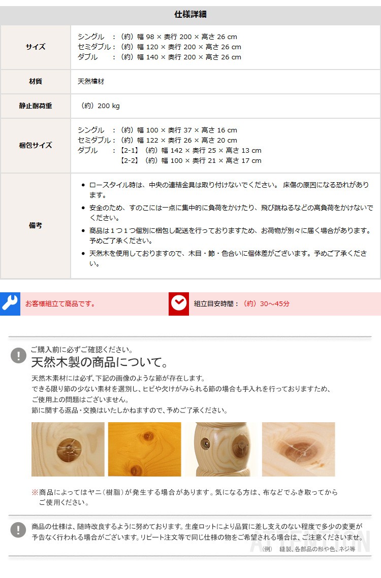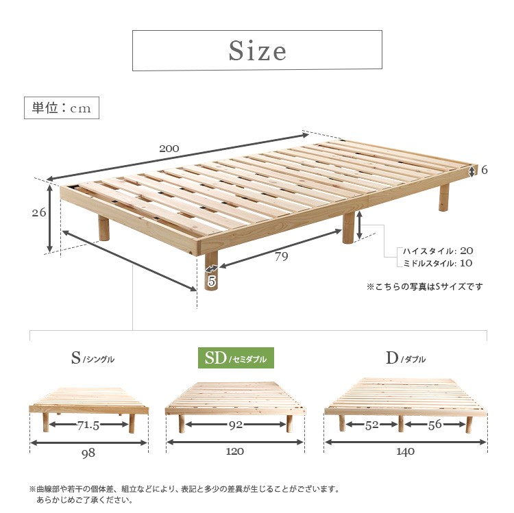 総檜脚付きすのこベッド(セミダブル)【Pierna-ピエルナ-】