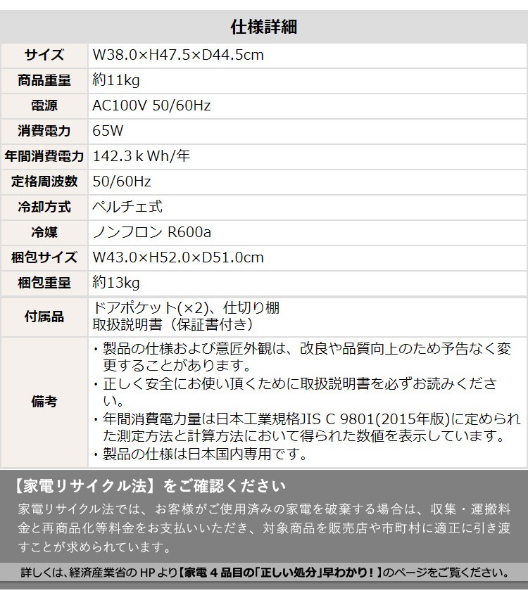 年間消費電力量 142.3kWh/年(50Hz/60Hz共通)