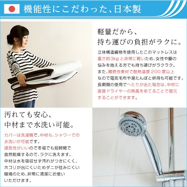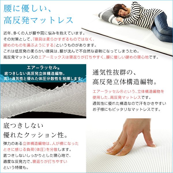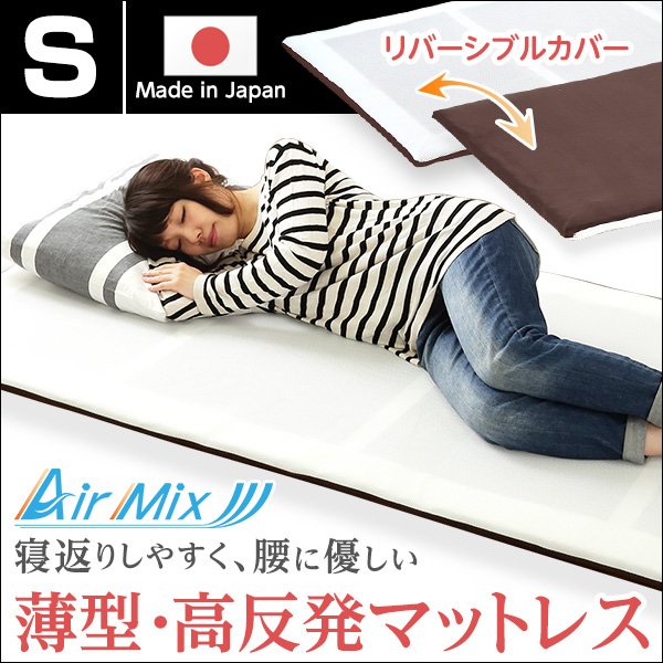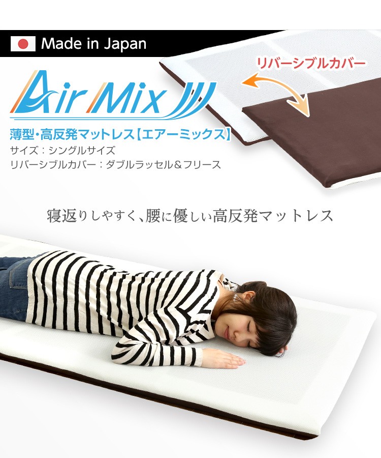薄型・高反発マットレス【AIRMIX】(体圧分散 通気 衛生 リバーシブル 日本産)