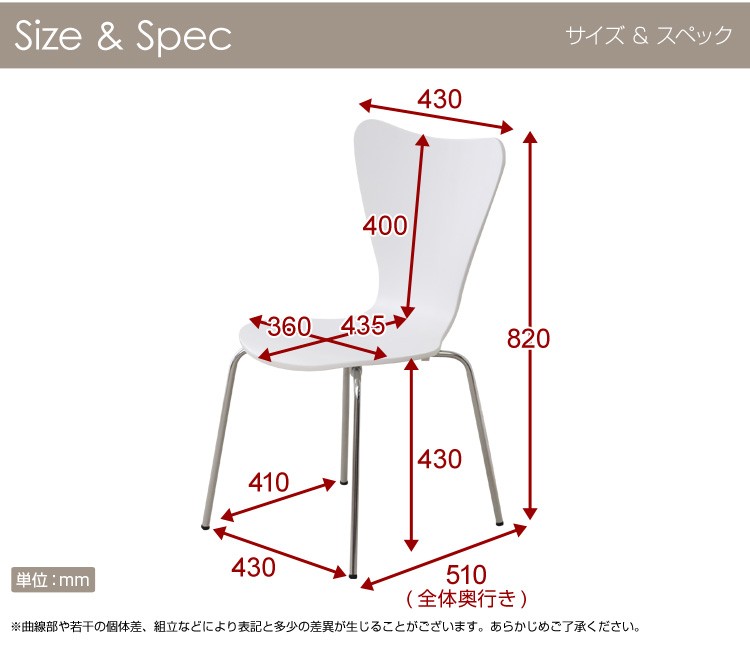 サイズ幅 430 x 奥行 410 x 高さ 820(座面高:430)mm