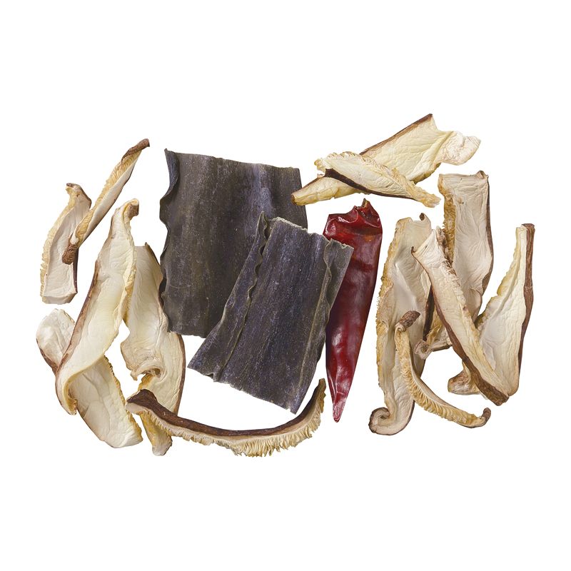 マイ醤油が手軽に作れる、おいしい出汁醤油の素。日高昆布と乾椎茸、唐辛子が入っています。瓶にお醤油を注いで半日経つと、旨みたっぷりのだし醤油が出来上がり。お醤油の塩かどがとれてとてもまろやかな味わいになります。