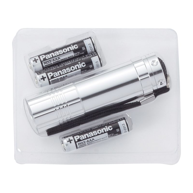 コンパクトなのにLEDが9個ついてとても明るい。すぐに使える電池付(パナソニック製)ストラップ付なので、携帯用にも便利です。