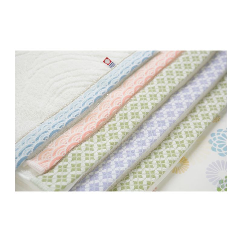 〜今治の「技」・美しい輪奈織紋様〜 吸水性・使いやすさとタオルの本質を守りつつ、今治の高いジャガード技術により美しい輪奈織紋様に仕上げています。 〜ふっくらやわらかい甘撚りの糸〜 厳選された良質綿をブレンドし、日本の特殊技術で紡いだ甘撚り糸を「輪奈」に使用しています。ソフトな風合いと優れた吸水性のタオルです。 認定番号:第2014-213号 認定番号:第2014-214号