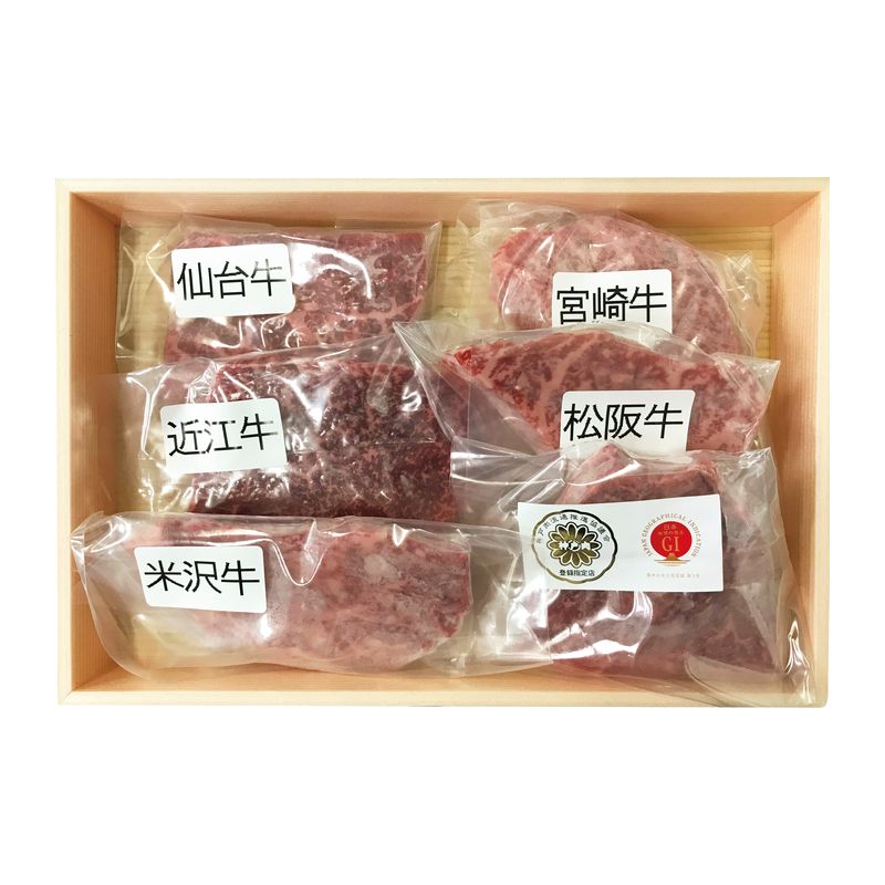神戸牛モモ肉・松阪牛モモ肉・近江牛モモ肉・米沢牛モモ肉・宮崎牛モモ肉・仙台牛モモ肉各60g×各1