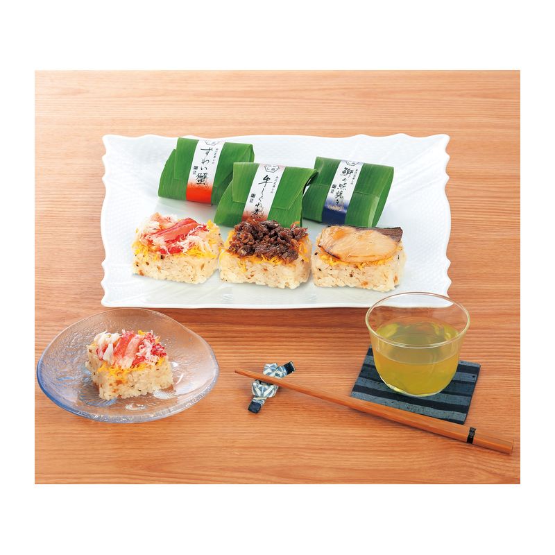 笹蒸寿し70g×9(ズワイ蟹、鰤照焼、牛しぐれ煮×各3)
