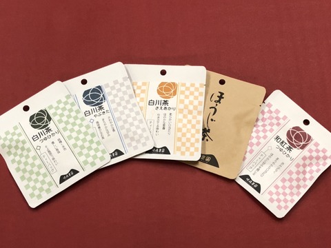 煎茶品種別に3種とほうじ茶および和紅茶のティー...