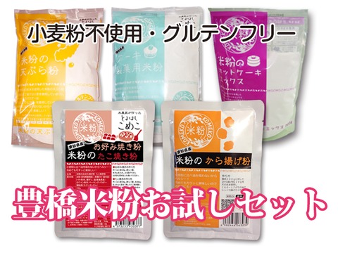 【グルテンフリー】豊橋米粉お試しセット(全5種類 1.ケーキ・製菓用2.ホットケーキミックス3.から揚げ粉4.天ぷら粉5.お好み焼き、たこ焼き粉)