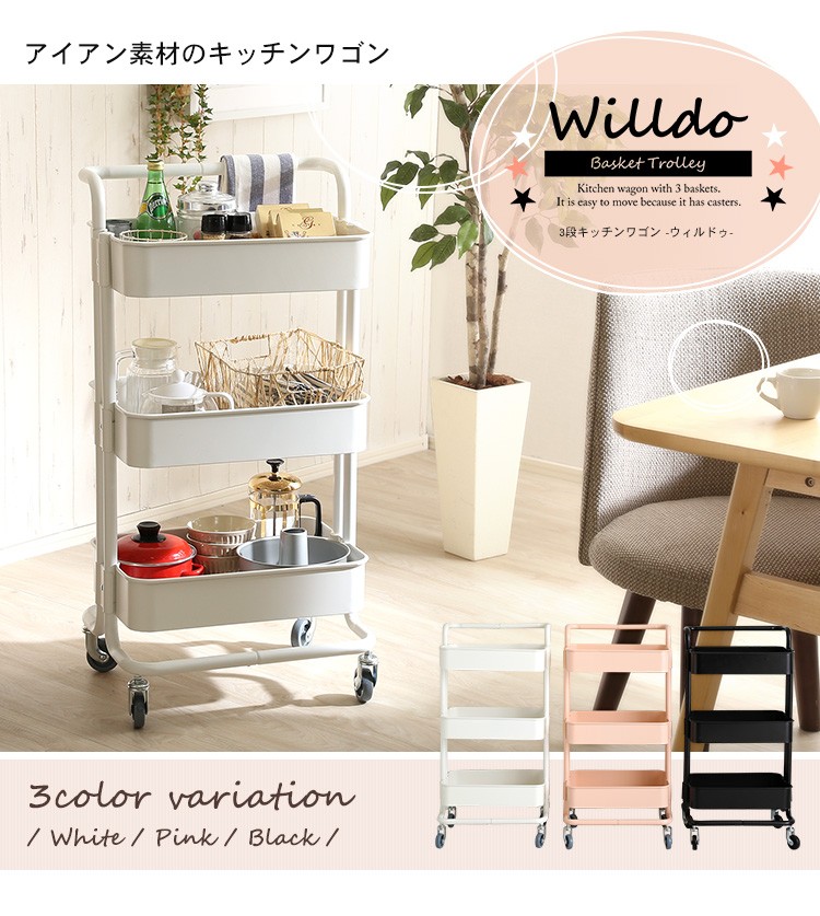 丈夫なアイアン素材のキャスター付き3段キッチンワゴン【Wildo-ウィルドゥ-】