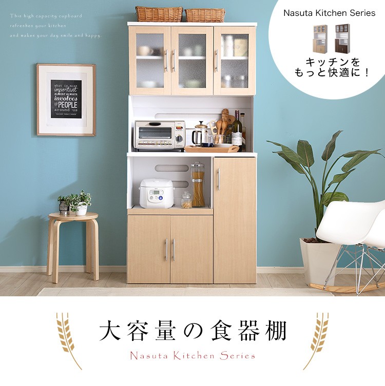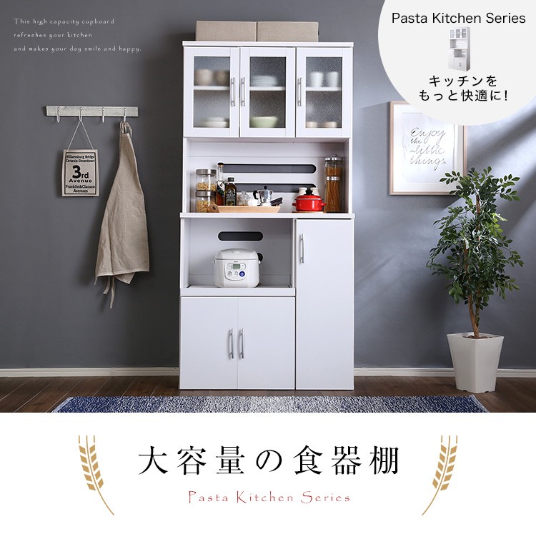 ホワイト食器棚【パスタキッチンボード】(幅90cm×高さ180cmタイプ)