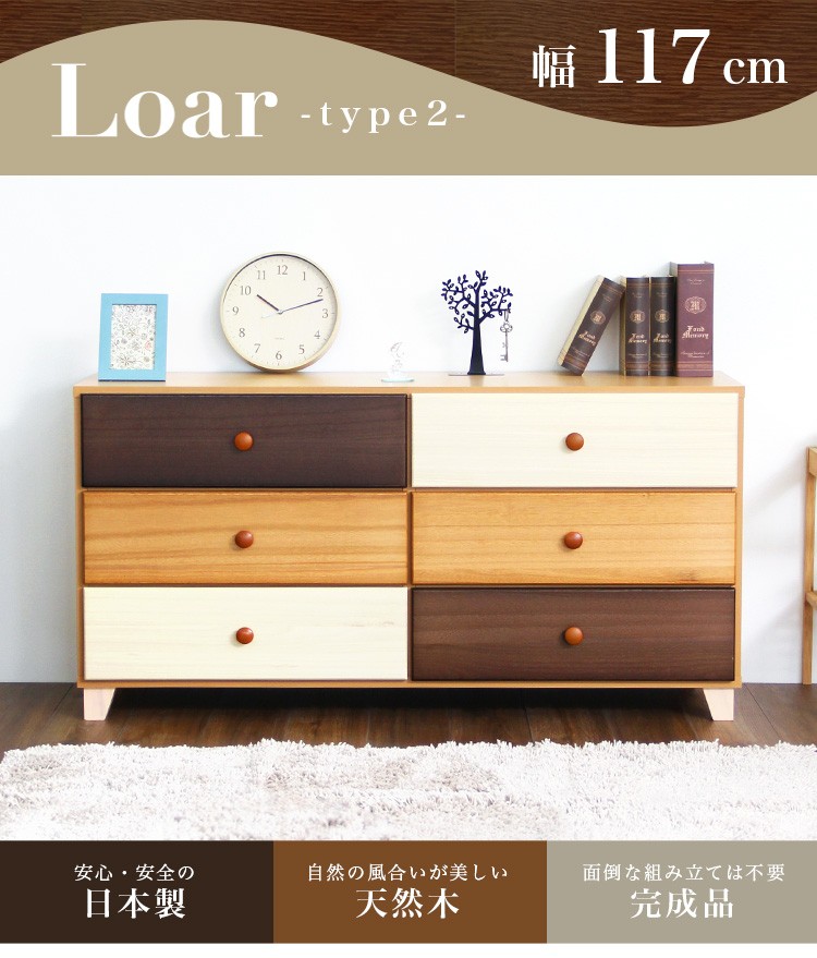 美しい木目の天然木ワイドチェスト 3段 幅117cm Loarシリーズ 日本製・完成品|Loar-ロア- type2