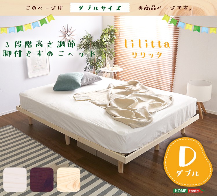 3段階高さ調整付きすのこベッド(ダブル) レッドパイン無垢材 ベッドフレーム 簡単組み立て|Libure-リビュア-