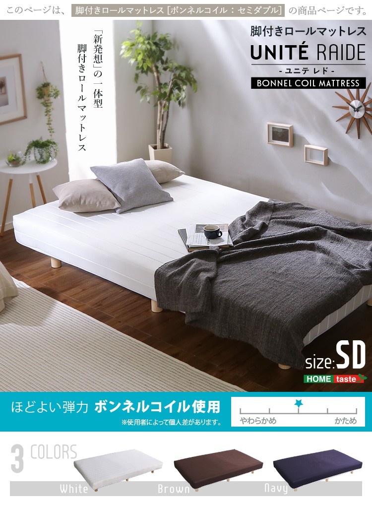 新発想で搬入も組立カンタン! ほどよい弾力 脚付きロールマットレス(ボンネルコイルスプリング)【Unite -Raide- -ユニテ・ライド-】セミダブルサイズ