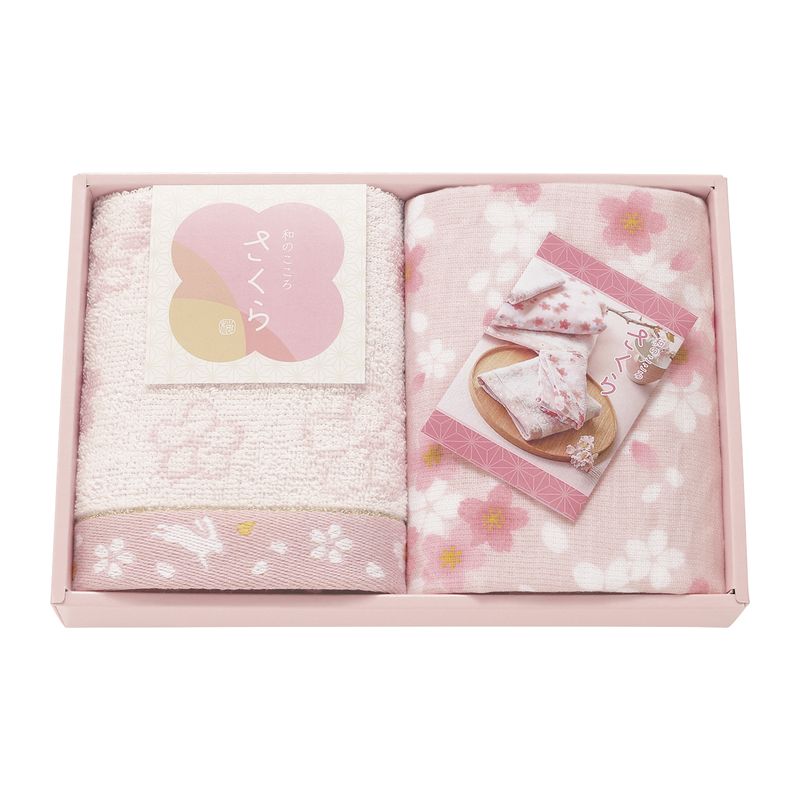 和のこころ さくら ガーゼパイルと甘撚りパイルのタオルセット 62806